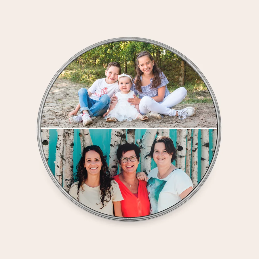 Kies in onze gebruiksvriendelijke editor één van de vrolijke designs en voeg jouw favoriete foto en eventueel de naam van de ontvanger toe. Wij zorgen voor een haarscherpe bedrukking op het aluminium plaatje bovenop het blik. Een smaakvol én persoonlijk cadeau voor elk moment.