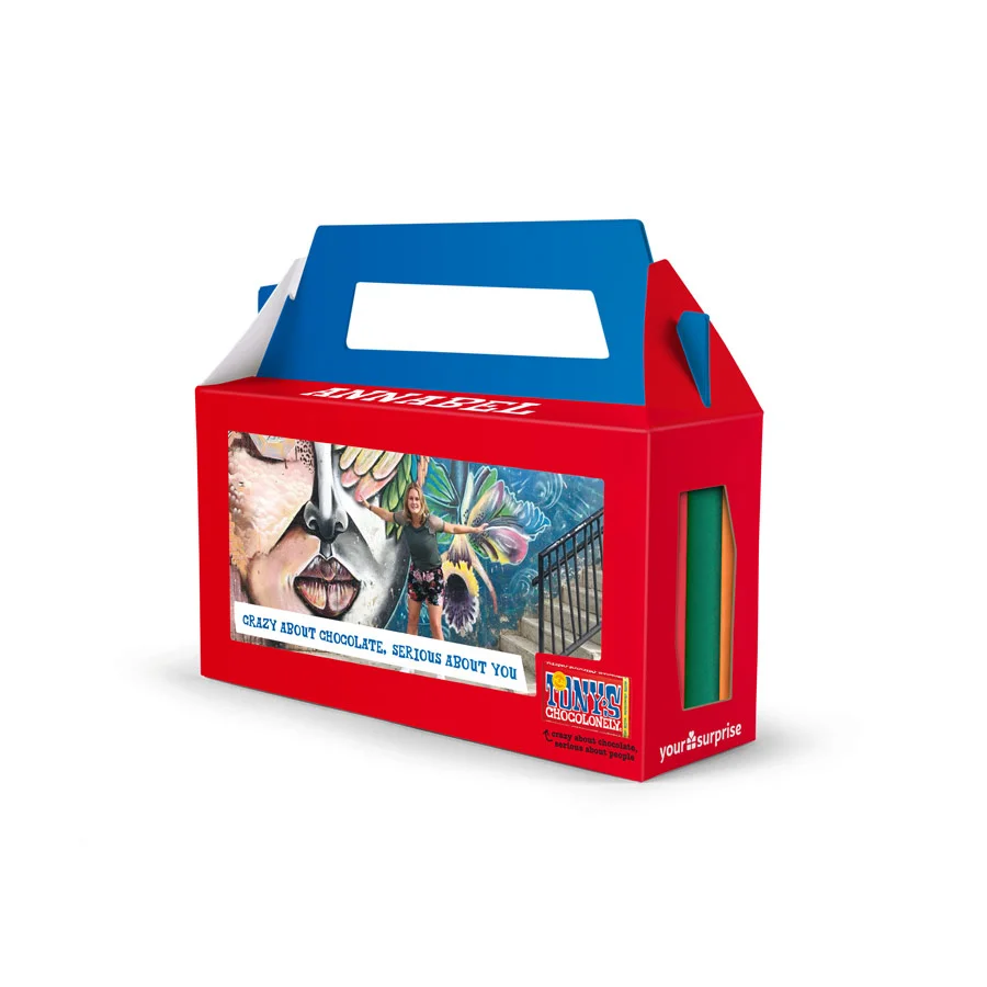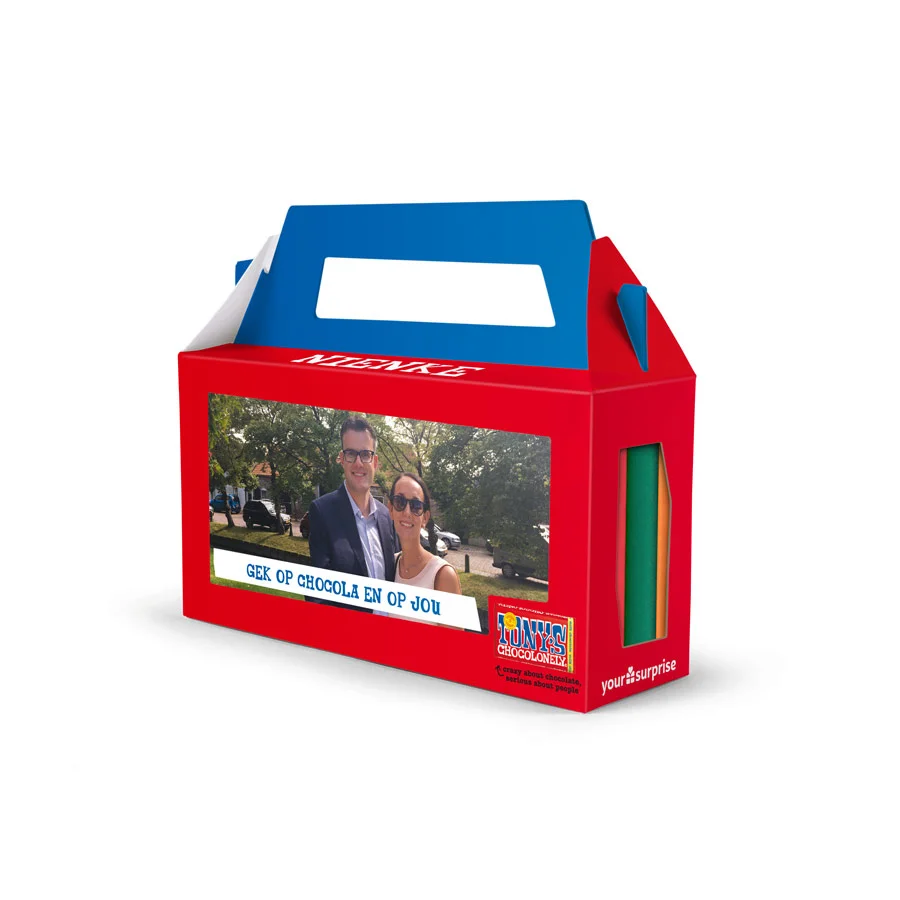 Een kleurrijk cadeau met drie favorieten van Tony’s Chocolonely – gepersonaliseerd met jouw eigen ontwerp. Perfect om iemand mee te verrassen of gewoon om zelf van te genieten.